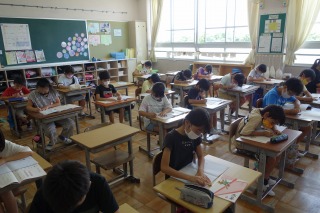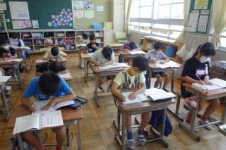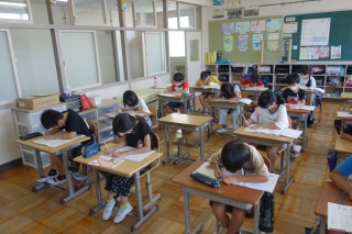 4年2組の書写は、硬筆でした。漢字とひらがなの大きさに気をつけながら、ノートを書きました。