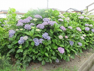 西門を出たところに美しいあじさいが咲いています。