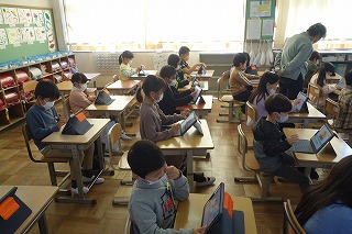 2年2組の学級活動は、タブレット端末を使って、プログロミングソフトの操作に取り組みました。