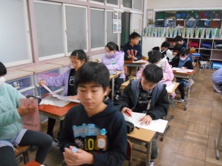 今日の「みーわんタイム」のワークシートをファイルに綴じているところでした。
