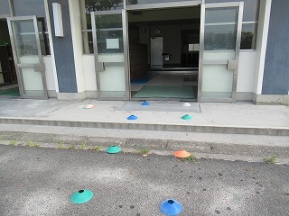 今日も昇降口で、検温を行いました。ポイントを置き、子どもたちが密にならずに並べるように工夫しました。