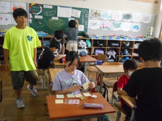 会社活動の相談をしていました。クラスのために、何ができるか班で話し合っていました。