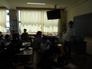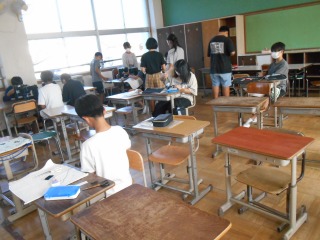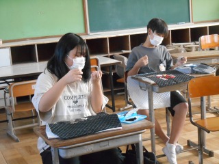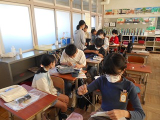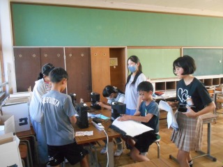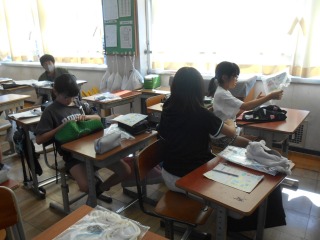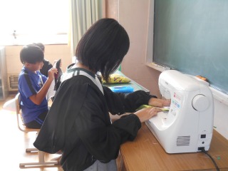 袋を縫っていました。教室では仕上げ、裁縫室ではミシンを使って縫っていました。