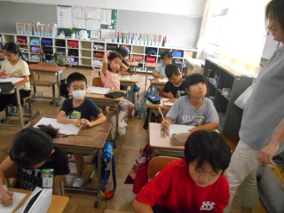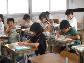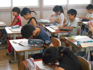 キロメートルとメートルの単位を変換しながら、計算する難しい練習に取り組んでいました。