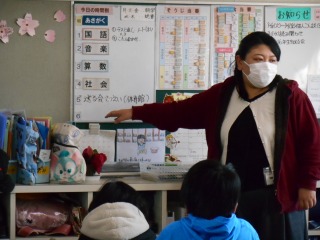 今日の予定を見ながら、5時間目の「6年生を送る会」の練習について確認をしていました。