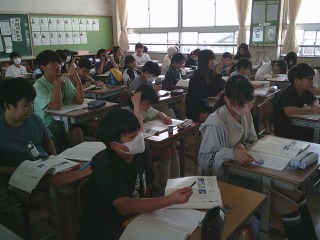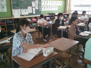短歌や俳句の学習をしていました。春をテーマに、この後オリジナルの作品を作ります。
