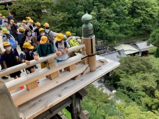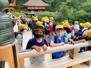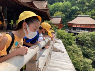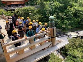 清水寺は大きなお寺です。有名は清水の舞台は、とても高いところにあります。6年生は清水の舞台からの景色を満喫しました。