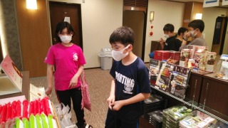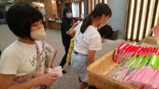 友禅染の実習の後、お土産を選んでいる子たちがいました。選んでいるのは自分用のお土産でしょうか。それとも、家族用のお土産でしょうか。