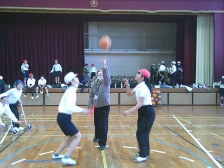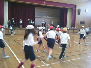 バスケットボールの試合です。体育館で元気な声が響いていました。味方を呼ぶ声、応援する声があちらこちらから聞こえ、月曜日から元気な姿が見られました。
