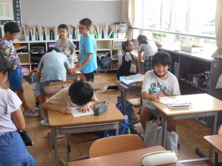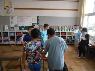 笑顔で挨拶から始まります。どんどん相手を探し、インタビューをしていました。