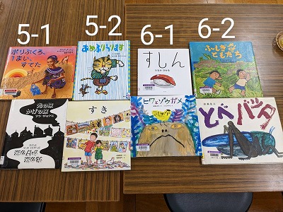 高学年の読み聞かせの絵本です。学年に応じて、いろんな絵本を選んでいただいています。いつも、ありがとうございます。