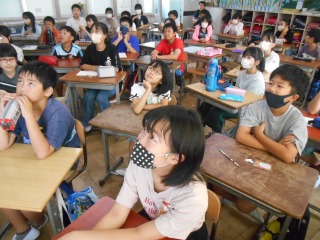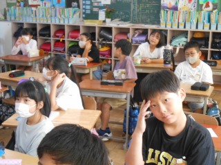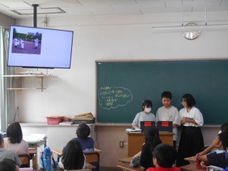 野外活動についてまとめたことを発表していました。聞く姿勢もしっかりとしていました。
