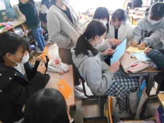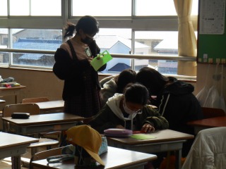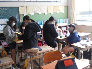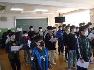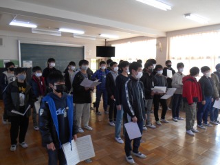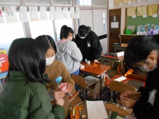 合唱をパート別で練習するため、男性パートが音楽室で練習していました。合唱練習をしている間、教室ではおりがみグランプリに向け、作品作りをしていました。