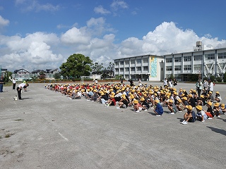 出火から3分ほどで全員が静かに整列完了しました。