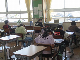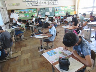 6年2組では、理科の時間、テストを行っていました。みんあ一生懸命、問題に向き合っていました。
