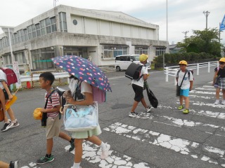 曇り空で少し涼しい朝でした。今日も安全に登校してきました。