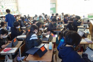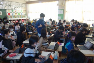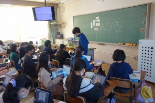 5年生で、算数のプログラミングの授業が行われました。本日は、講師の先生をお招きしての授業です。専門家の指導に、みなさん集中して取り組んでいましたね。