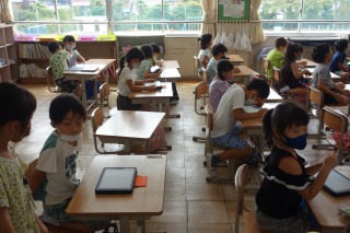 1年2組の算数は、『10よりおおきいかず』の学習でした。タブレットを使いながら学習を進めました。