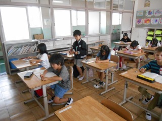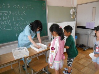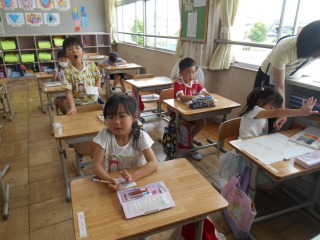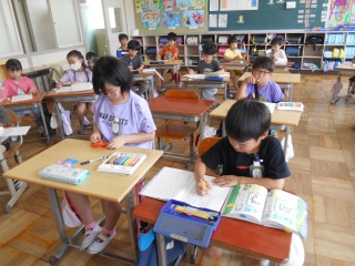 お手紙を書いていました。色鉛筆でかわいい挿絵を描いていました。