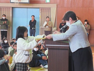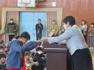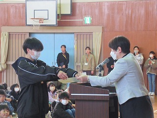 本日は校長先生とあいさつの後、個人作品の表彰や給食委員企画の空っぽデーの優秀クラスの発表がありました。また、生徒指導の先生からは、通学班で帰宅した後の行動についてお話がありました。最後に、東日本大震災ということで、私たちも頑張るから応援してねという思いをこめて、黙祷の時間を設けました。