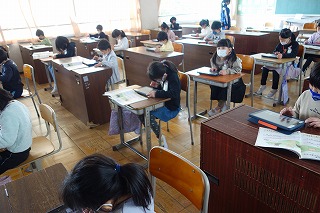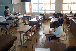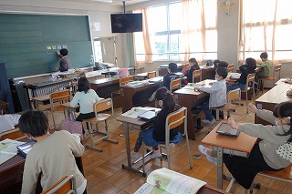 1年1組の音楽は、子犬のマーチに合わせてタブレット端末の鍵盤ソフトを演奏しました。