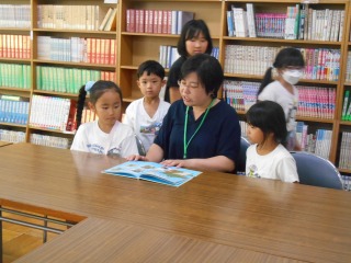 2時間目後の放課に、読み聞かせボランティアの方に図書室で絵本を読んでいただきました。何人か待っている子もいました。朝の読み聞かせ、本の修繕、放課読み聞かせと長い時間にわたりご協力いただき、ありがとうございました。
