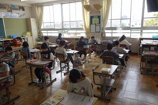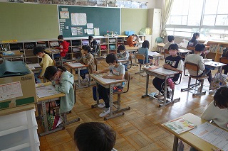 4年2組の国語は、「初雪のふる日」の復習テストに取り組みました。