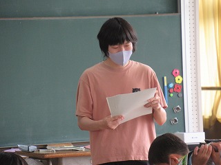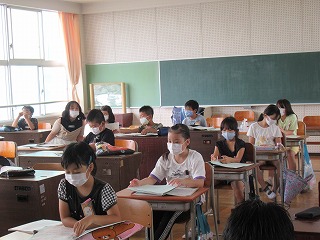 3年2組では、音楽の授業が行われていました。学習プリントを返却しているところでした。