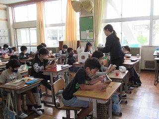 4年2組では、朝読書が行われていました。