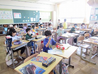 朝の教室の様子です。みんな元気に挨拶をしてくれます。
