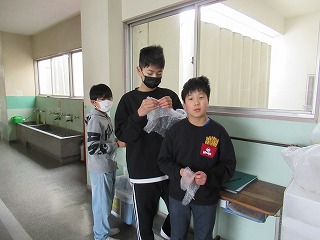 環境委員の子どもたちがプチプチの作業をしてくれていました。