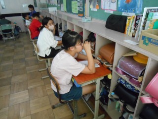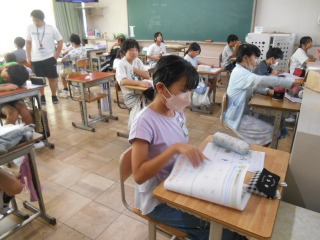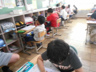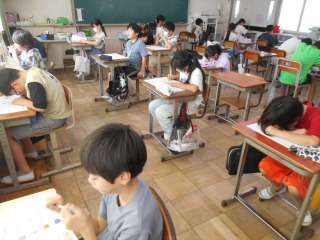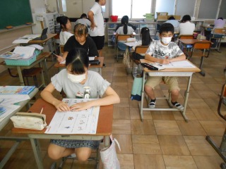 テストを行っていました。丁寧に書き、中学校でも困らないように準備をしています。