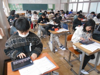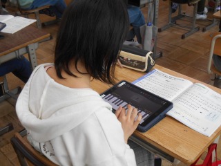 画面には鍵盤が見えます。それぞれのタブレットを使ってピアノ演奏をしていました。みんなで合奏です。