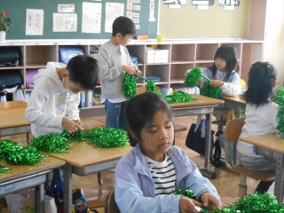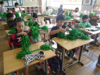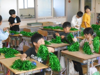 ミワリンピックで使うポンポンに、名前シールを貼っていました。