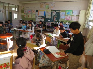 カタカナで表すことのできる食べ物を発表していました。最後は、身の回りにあるカタカナで表すことのできる物の名前を考えていました。