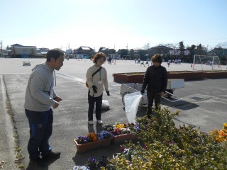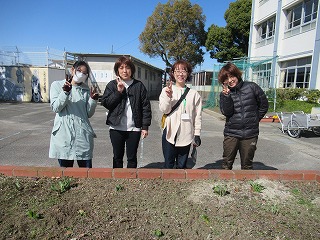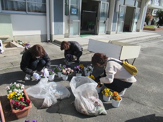 本年度も1年間、PTAボランティアの皆さんに支えられた年となりました。本日は4人の方にご参加いただき、卒業式に向け鉢植えの花摘みと花壇の草取りをしていただきました。参加していただいたみなさん、本当にありがとうございました。来年度もたくさんの保護者の方に参加していただける活動にしていきたいと考えています。