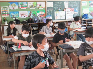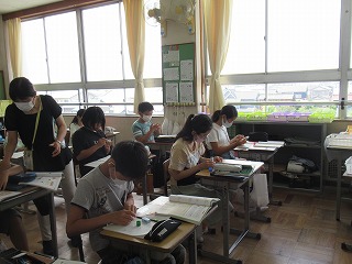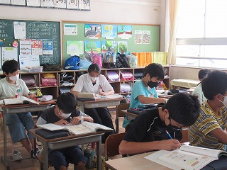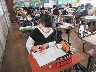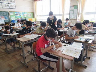 6年1組では、算数の授業が行われていました。形を並べ、作業をしていました。みんな黙々と取り組んでいました。