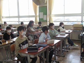 6年2組では、朝の時間に、担任の先生の話を聞いていました。