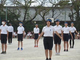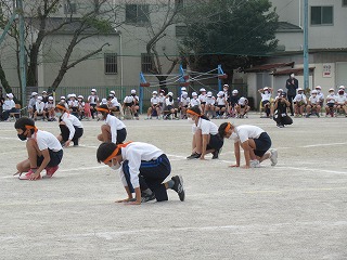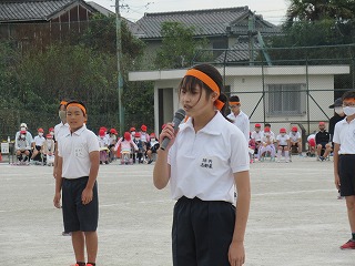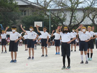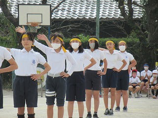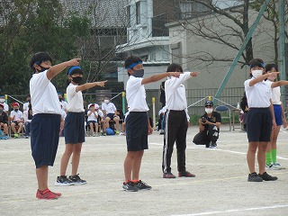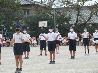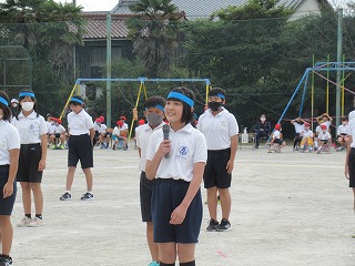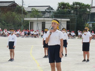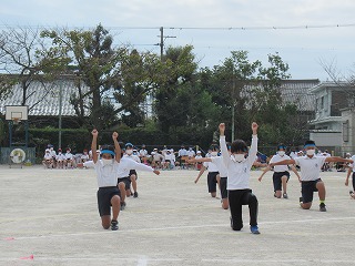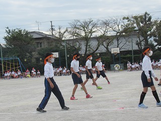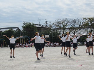 5・6年生の表現はダンスリーダーを中心に4つのグループに分かれ、披露されました。見ている子どもたちが思わず拍手をしたり、手拍子をうったり・・・。その演技に引きこまれていました。