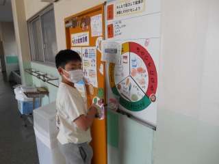 昇降口の献立表を、給食委員の子が作ってくれていました。