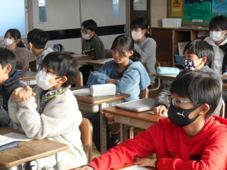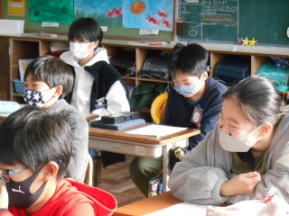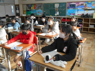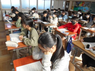 「冬休みの生活」のプリントを見ながら、冬休みを楽しく過ごすための確認をしていました。