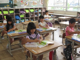 1年1組では、算数の授業が行われていました。数図ブロックを使い、数を確認していました。