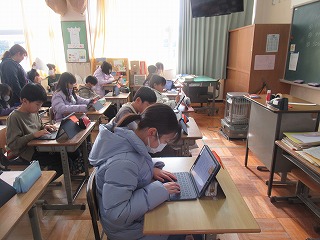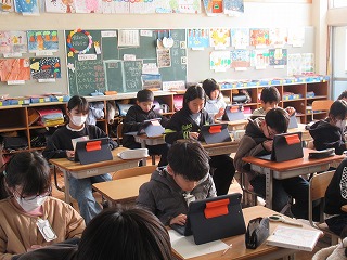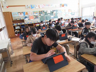 4年1組では、SDGsについて、タブレット端末を用い、調べ学習をしていました。