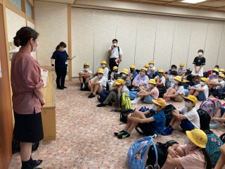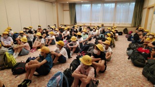 健康観察と検温をしました。6年生は、全員元気です。旅館の方に挨拶をしたら、いよいよ2日目の見学地に向けて出発です。