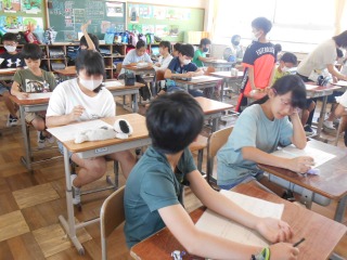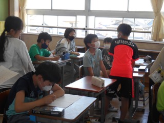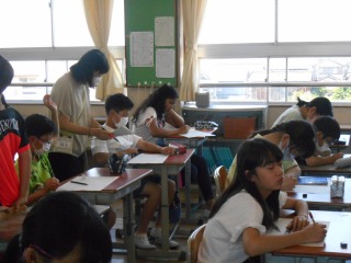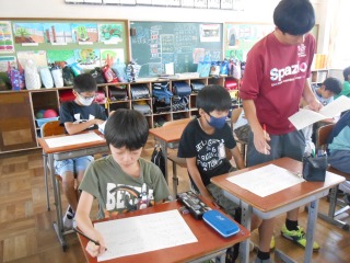 プリントに取り組んでいました。分数を使ったわり算に挑戦していました。