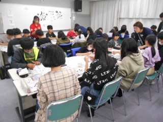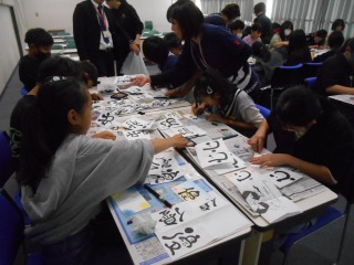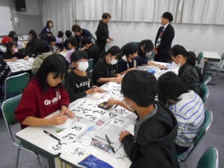 昨年度に引き続き、外部講師の方をお招きし、6年生が「己書」をかきました。普段なかなか使う機会のないパステルや筆ペンを使い、それぞれの思いをはがき大の紙に心を込めてかいていました。