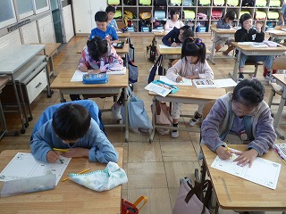 秋のサクラやイチョウの葉がどんな色をしているのか、色を塗りました。