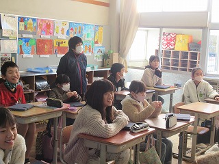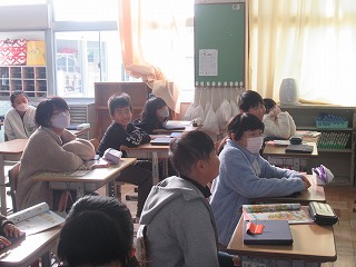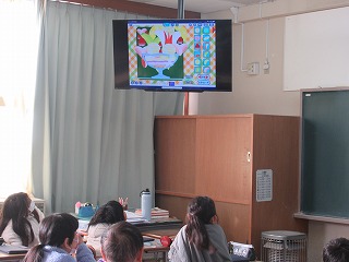 4年2組は英語の時間でした。タブレットで自分のパフェを盛りつけて、英語で紹介を行っていました。