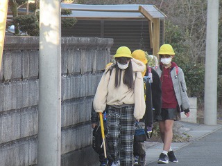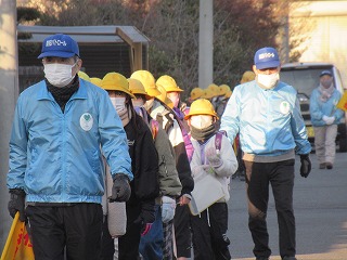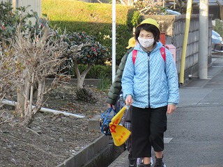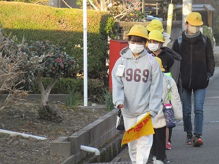 西門の通学班の登校の様子です。