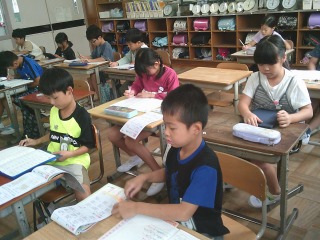 ドリルに取り組んでいました。3桁のたし算をひっ算で計算する練習をしていました。